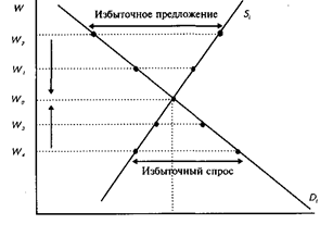 , предложение труда превышает спрос на него, а когда заработная плата ниже W