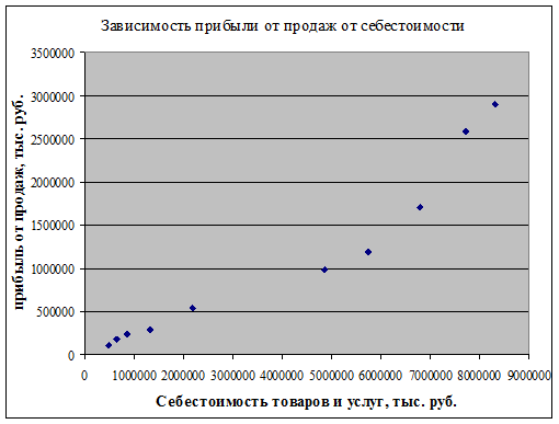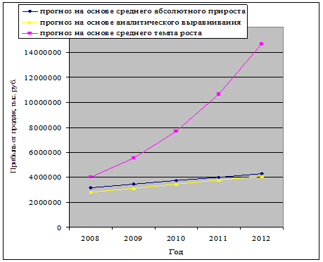 По результатам произведенных расчетов можно сделать вывод, что в отчетном периоде организация достигла высоких результатов в своей деятельности. Прибыль от продаж в 2010 году увеличилась на 320870 тысяч рублей, что составляет 112,42% от уровня 2009 года. В 2010 году 1% увеличения прибыли от продаж составил 25832 тысяч рублей. Среднегодовая прибыль за 10 лет составляет 1073765,2 тысяч рублей. Ежегодно прибыль от продаж ОАО «Дальсвязь» увеличивается на 279064,7 тысяч рублей или на 38, 3%. В 2012 году ожидаемое прогнозное значение прибыли составит около 4092798,6тысяч рублей.