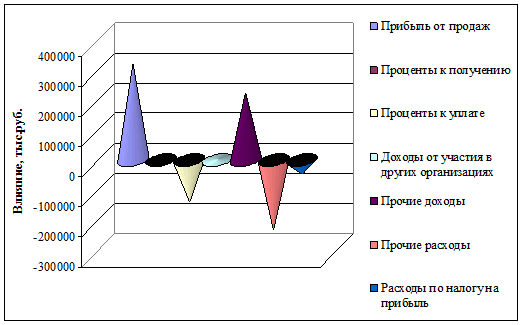 Было установлено, что совокупное влияние на чистую прибыль таких факторов, как прибыль от продаж, проценты к получению, проценты к уплате, доходы от участия в других организациях, прочие доходы, прочие расходы, и расходы по налогу на прибыль привело к ее увеличению на 112938 тыс. руб.
