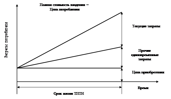 Одним из доминирующих параметров, оказывающих воздействие на конкурентоспособность промышленного предприятия, является полная стоимость владения ТПТН (товары производственно-технического назначения). Покупка товара означает только обязательное условие, начальный пункт его использования. Реализация полезного эффекта достигается в ходе его эксплуатации, что связано с дополнительными расходами. Поэтому для покупателя исключительно важными являются не только затраты, произведенные непосредственно при приобретении оборудования (т.е. его продажная цена), но и возникающие в процессе его потребления эксплуатационные расходы (по многим же видам они существенно превышают продажную цену).