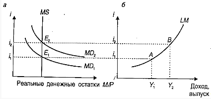 (см. рис. 6 б). При сокращении автономного спроса на деньги кривая LM2