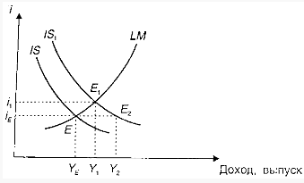 Таким образом, модель IS-LM показывает; что рост государственных расходов вызывает как увеличение выпуска с YE