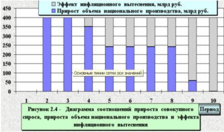 . Вместе с тем выпуск увеличивается в меньшей степени, чем следовало ожидать, так как рост процентной ставки уменьшает мультипликационный эффект государственных расходов: прирост государственных расходов (как и увеличение других автономных расходов, снижение налогов) частично вытесняет планируемые частные инвестиции.Такое явление получило название эффекта вытеснения. Оно снижает эффективность экспансионистской (стимулирующей) фискальной политики. Именно на него ссылаются монетаристы, утверждая, что фискальная политика недостаточно действенна и приоритет в макроэкономическом регулировании должен быть отдан денежно-кредитной политике.