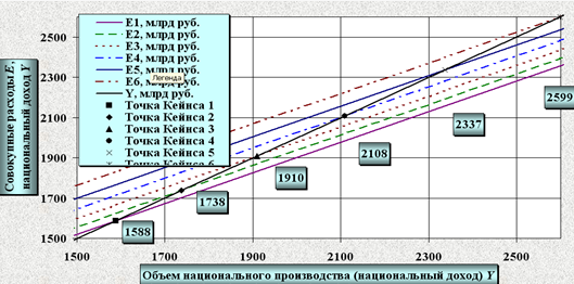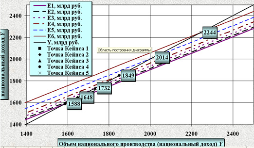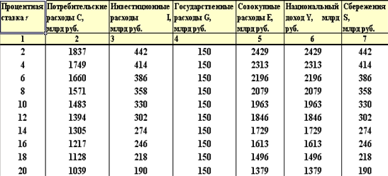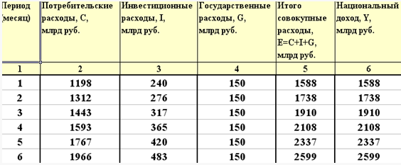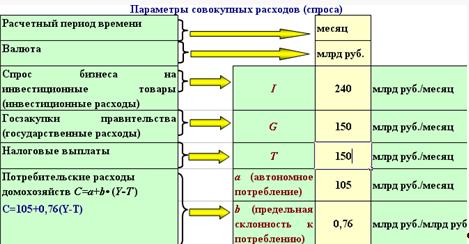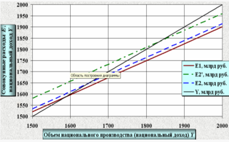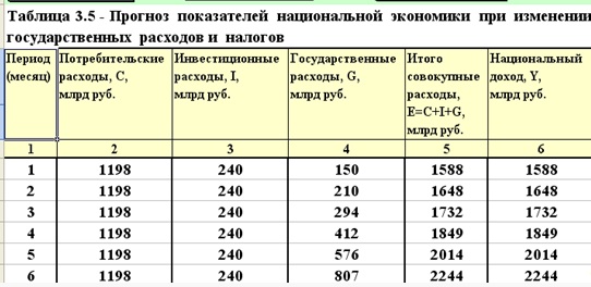 Проанализировать изменения в экономике с использованием модели Кейнса. Спрогнозировать показатели национальной экономики при изменении инвестиционных расходов, государственных расходов, при изменении налогов.