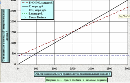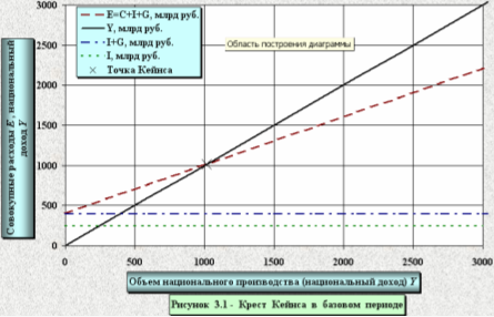 Построили крест Кейнса и с его помощью провели количественный анализ в экономике. Сделали количественную оценку параметров равновесия в экономике с помощью креста Кейнса, мультипликацию инвестиций, государственных расходов и налогов, вследствие чего обнаружили взаимосвязь между инвестициями и сбережениями в экономике.