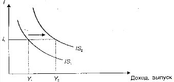 Увеличение государственных расходов, снижение налогов приведут к сдвигу кривой IS1