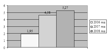 В 2007 году наблюдался рост коэффициента рентабельности активов на 4% и спад коэффициента рентабельности собственного капитала до 84%, в 2008 году коэффициент рентабельности активов увеличивается на 2 %, а коэффициент собственного капитала также сохраняет динамику к спаду.