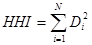 Индекс рыночной концентрации Герфиндаля-Гиршмана рассчитывается как сумма квадратов долей, занимаемых на рынке всеми действующими на нём продавцами: