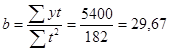 , где - уровни, выравненные по прямой, а – средний выравненный уровень, b – средний абсолютный прирост за единицу изменения времени.