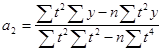 где у – значение уровней фактического ряда динамики; t – порядковый номер периода, п – количество уровней ряда динамики.