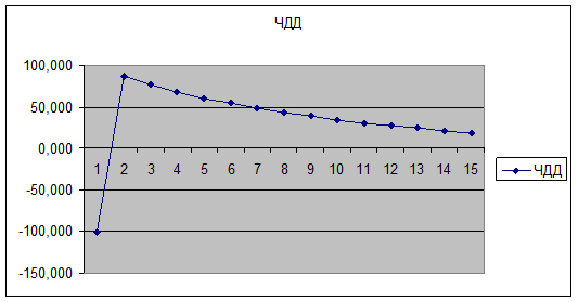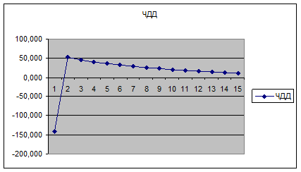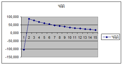 для 2 варианта разработки месторождения величина ЧДД меняет знак при переходе от 4 к 5 году освоения проекта. Из этого следует, что в этом временном интервале существует точка, для которой капитализированная рента равна нулю.