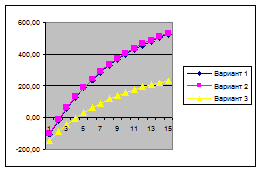 Рассчитываем динамический срок окупаемости для всех трех вариантов: