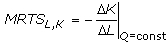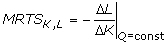 Мерой взаимозаменяемости факторов производства служит предельная норма технического замещения MRTS (marginal rate of technical substitution), которая показывает, на сколько единиц можно уменьшить один из факторов при увеличении другого фактора на единицу, сохраняя выпуск неизменным. Предельная норма технического замещения труда капиталом