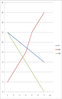 На основе графика делаем выводы что оптимальный объем производства Q=3,5, а цена Р=9,5