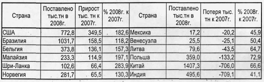 За 2008 год по сравнению с 2007 годом изменены поставки по следующим странам:
