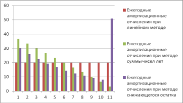 При равномерном методе предприятия начисляют амортизационные отчисления ежемесячно, исходя из годовой нормы амортизации, деленной на 12. Равномерный метод начисления амортизации ориентирован на равномерный физический и моральный износ основных фондов. Достоинством его является простота применения.