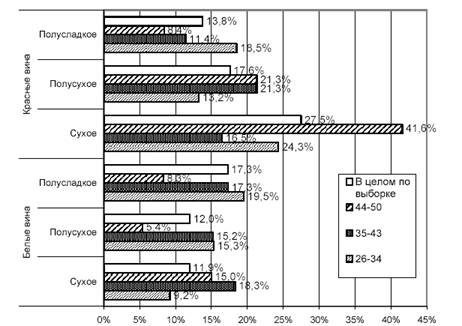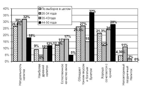натуральность напитка, тонкий вкус и богатый букет, хорошее сочетание с кухней. По вкусу и содержанию сахара респондентов в основном привлекают красные сухие вина. По странам производителя в основном отдают предпочтения французским и итальянским винам. Максимальная средняя цена, которую готовы заплатить респонденты за бутылку вина примерно 1300 рублей.