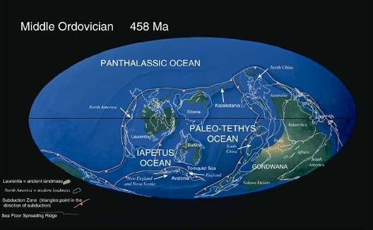 Рис. 2. Океаны и суша среднего ордовика. [15]