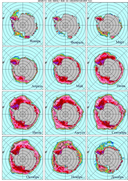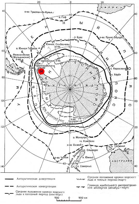 Однако своеобразие гидрологического режима антарктических вод между зоной конвергенции и северными берегами Антарктиды служит основанием для выделения этой части Мирового океана в особый регион, отличный от Тихого, Индийского и Атлантического океанов. [8]