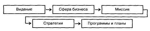 Стратегическое управление включает пять основных компонентов, образующих следующую цепь перспективно-целевых решений (рис. 2):