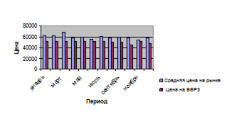Для направления «ремонт и формирование колесных пар» используется стратегия низких издержек. Применение данной стратегии стало возможным в связи со снижением рыночной цены на металл. В течение 2006 года также произошло снижение цены на рынке колесных пар, как нового формирования (НОНК), так и ремонтных (СОНК). Изменение цен отражены на рисунках 2.4 и 2.5. Так вначале года цена на колесную пару НОНК составила около 72 тыс. руб., а в конце – 68 тыс. руб.