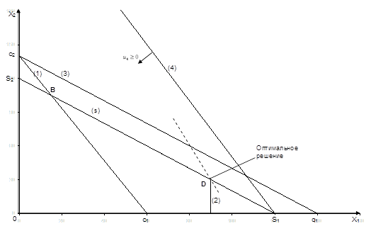 4. Назовём допустимой областью (4) подмножество точек допустимой области (3), минимизирующих u4 при соблюдении ограничений (4) и . Любая точка этой области является оптимальным решением полной исходной задачи.