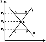 ) спрос превышает предложение (отрезок CF) и возникает дефицит товара на рынке. В этом случае излишек спроса и конкуренция покупателей будут толкать цену вверх. Лишь в точке E достигается равновесие сил и устойчивая цена, которая может сохраняться в краткосрочном периоде, пока не изменятся какие-либо параметры, определяющие спрос и предложение.