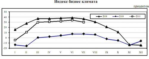 Однако в июле по сравнению с июнем индекс бизнес-климата уменьшился на 4 процентных пункта до +30,1%. Конъюнктурный обзор, на основе которого рассчитан ИБК за июль, подготовлен путем опроса руководителей 2122 предприятий, работающих в промышленности, транспорте, строительстве, торговле и общественном питании. Значение индекса указывает на то, что число руководителей предприятий, оценивающих текущее состояние и ожидаемые изменения бизнес-климата как положительные, на 30,1% больше числа тех, кто констатирует и ожидает негативные сдвиги в экономической конъюнктуре.