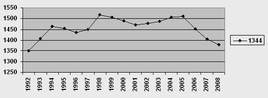 Таблиця 1. Чисельність працівників наукових організацій за періоди 2004-2009, осіб