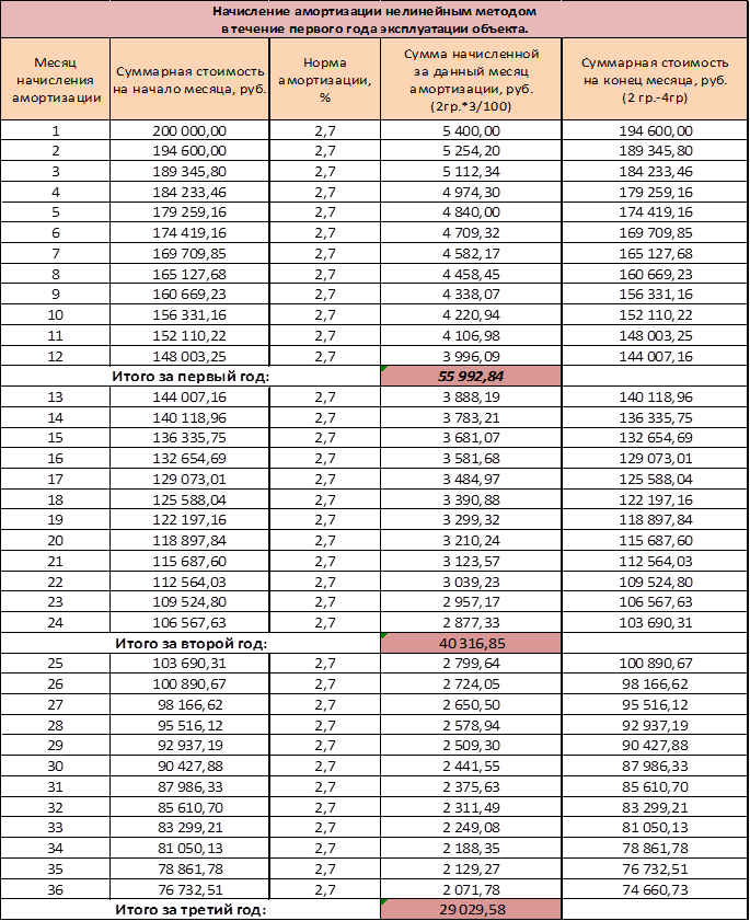 3.2 Нелинейный метод начисления амортизации.