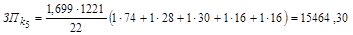 Затраты на оплату труда определяются суммированием основной и дополнительной заработной платы. Основная заработная плата была определена в п.5. Дополнительная зарплата равна 15% от основной заработной платы. Для примера в п.5 она равна: ЗПдоп