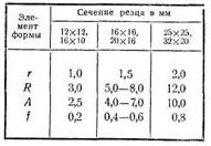 Рекомендуемые значения радиуса закругления при вершине резца r, элементов радиусной лунки R и А, а также размера фаски f в зависимости от сечений резца приведены в табл. 5. При обработке легких сплавов ширина фаски / принимается равной нулю.