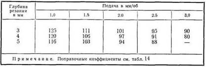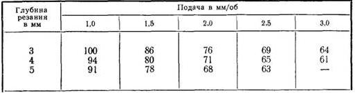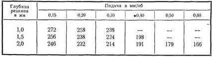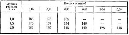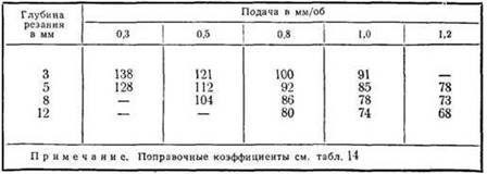 С меньшей, иногда значительно, производительностью обработку стали и чугуна при условиях, указанных в таблице, можно выполнять резцами из быстрорежущей стали марки Р18 (или других марок).