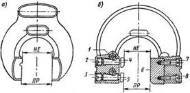 Проверка диаметров деталей, изготовляемых в условиях взаимозаменяемости, производится предельными скобами (рис. 22). Жесткая скоба (рис. 22, а) имеет два постоянных размера, обозначенных на рисунке ПР и НЕ, соответствующих наибольшему и наименьшему допустимым (предельным) диаметрам проверяемой поверхности детали.