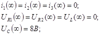 Переходной процесс в схеме начинается в момент включения ключа К. До этого момента времени все токи и напряжения равны нулю.