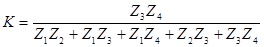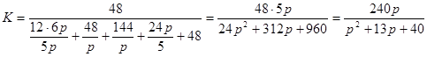 Для схемы такой структуры коэффициент передачи можно найти по типовой формуле. Он будет равен