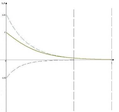 При производная (имеет положительное значение ), т.е. кривая i(t) при от значения пойдет вверх.