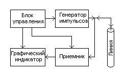 Отраженные импульсы поступают с линии в приемник, в котором производятся необходимые преобразования над ними. С выхода приемника преобразованные сигналы поступают на графический индикатор.