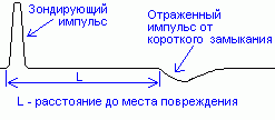 Если же линия короткозамкнута или оборвана, то вся энергия импульса отражается и возвращается к началу линии. Измерив время задержки посланного в линию импульса и принятого из линии, можно определить расстояние до места повреждения.