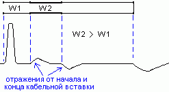 Отраженный сигнал появляется в тех местах линии, где волновое сопротивление отклоняется от своего среднего значения: у муфт, у мест изменения сечения жилы, у мест сжатия кабеля, у места обрыва, короткого замыкания и т.д.