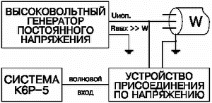 Структурная схема измерений частичных разрядов в кабельных линиях показана на рисунке. Основными узлами измерительной схемы являются: компьютерный анализатор дефектов и частичных разрядов в кабельных линиях и высоковольтный адаптер. Компьютерный анализатор дефектов и частичных разрядов в кабельных линиях может быть выполнен в виде совокупности измерительного блока и портативного компьютера (как показано на рисунке) или в виде специализированного измерительного прибора. Высоковольтный адаптер служит для развязки компьютерного анализатора и источника воздействующего напряжения. Так, короткие импульсы напряжения, распространяющиеся в кабельной линии, беспрепятственно проходят на вход рефлектометра TDR или на выход частичных разрядов, но не попадают в низкочастотный (50 или меньше герц) источник напряжения. В тоже время напряжение (1…1,2)*Uраб от источника беспрепятственно поступает на кабельную линию. В качестве воздействующего напряжения может служить напряжение промышленной сети или напряжения от источника сверхнизкой частоты.