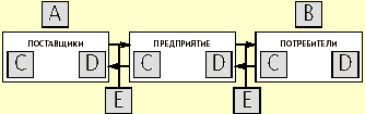 Хозяйственные отношения, возникающие между поставщиками и потребителями в связи с необходимостью совместного управления материальными потоками на основе новейших информационных технологий, создают предпосылки для оптимизации цепочек поставок и коллективного доступа к информации. Информационные ресурсы являются ключевым элементом логистической цепочки. Динамика развития экономических процессов, жесткие ресурсные ограничения приводят к существенному возрастанию скорости материальных, транспортных, финансовых и информационных потоков при сокращении числа посредников в логистических цепочках. В процессе взаимодействия участники цепочки активно используют такие преимущества логистических информационных систем, как электронные средства управления транспортно-складскими технологиями, электронный обмен данными. При этом условия поставки и транспортировки продукции требуют объединения промышленных, торговых, транспортно-экспедиторских компаний, обслуживающих инфраструктуру рынка, и создания интегрированных логистических цепочек и сетей. Именно таким образом возможно быстро, своевременно и с минимальными затратами осуществлять поставки продукции потребителям. Одновременно их участники на основе единой информационной системы достигают преимуществ, связанных со снижением общих затрат, разделением рисков и повышением качества функционирования всей системы. Потенциал отдельных предприятий существенно увеличивается за счет привлечения ресурсов и конкурентных возможностей других участников. Таким образом, интегрированный логистический подход, использующий "цепочку ценностей", ориентирован на всех участников цепочки. Цепочка ценностей содержит пять областей эффективности: связь с поставщиками (А); связь с потребителями (В); технологические процессы внутри одного предприятия (С); логистические процессы между подразделениями внутри предприятия (D); логистические интегрированные связи между предприятиями логистической цепочки (Е). Предприятия, входящие в интегрированные цепочки поставок, нацелены на существенное снижение затрат за счет более быстрой оборачиваемости ресурсов, сокращения времени выполнения заказа, координации транспортной работы с сетью поставщиков.