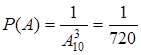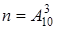 Число всіх елементарних наслідків експерименту – це число можливих розміщень з 10 елементів по три (отримані комбінації елементів можуть відрізнятися одна від одної або самими елементами, або їх порядком): .
