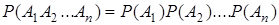 Ймовірність спільної появи декількох подій, незалежних в сукупності, дорівнює добутку ймовірностей цих подій:
