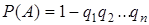 Ймовірність появи хоча б однієї з подій , незалежних в сукупності, дорівнює різниці між одиницею і добутком ймовірностей протилежних подій :