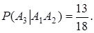 Припускаючи, що студент знає відповіді і на перше, і на друге запитання, обчислимо умовну ймовірність події, яка полягає в тому, що він знає відповідь натретє запитання: