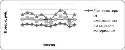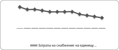 Потери от «омертвления» капитала максимальны также в сентябре из-за наибольшего объема выпуска продукции в этот месяц: по сырью и материалам – 12623 руб., а по покупным изделиям и материалам – 25616 рублей. Минимальны потери от «омертвления» капитала приходятся на ноябрь, так как выпуск холодильников минимален : по сырью и материалам – 6311 рублей, а по покупным изделиям и полуфабрикатам – 12808 рублей. В заключении второй главы были посчитаны общие затраты на снабжение всей продукции. Максимальны в сентябре – 103247 рублей, минимальны в ноябре – 55748 рублей. Также были посчитаны затраты на снабжение на единицу продукции. Они в противоположность суммарных затрат .