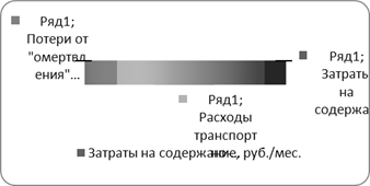 Во второй главе «Определение затрат в звене Снабжение» был рассчитаны общие затраты, которые складываются из затрат на содержание, транспортно-заготовительных расходов и затрат на «омертвление» капитала. Наибольшие затраты на содержание сырья, материалов и покупных изделий полуфабрикатов были осуществлены в сентябре (15949,00). Транспортно-заготовительные расходы зависят от размеров партии поставки, а следовательно, от объема выпуска продукции. Поэтому наибольшие транспортно-заготовительные расходы приходятся в сентябре, где выпуск продукции составляет 1800 штук.