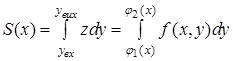 Знайдемо тепер площу . Для цього проведемо через точку площину, перпендикулярну осі (рис.3). У перерізі цієї площини і циліндричного тіла утворюється трапеція . Апліката точки лінії при фіксованому є функцією лише , причому змінюється в межах від до . Площа трапеції дорівнює визначеному інтегралу