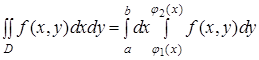 Обчислення подвійного інтеграла за формулою (6) як границі інтегральної суми, так само як і у випадку визначеного інтеграла, пов'язане із значними труднощами. Щоб уникнути їх, обчислення подвійного інтеграла зводять до обчислення так званого повторного інтеграла - двох звичайних визначених інтегралів.